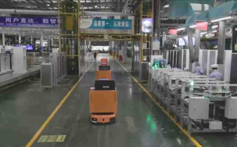 为车载冰箱物流配送打造的智能解决方案,,,,包含产中物流通过潜伏举升AMR搬运至线边,,,,产后成品物流智能仓储,,,,流程包含产中物流智能齐套入库,,线边安灯叫料AMR智能配送至线边,,,,成品入库、、、出库,,通过无人堆高车机器人,,智能仓储管理替代人工作业管理,,,,实现更高存储、、、更高效率、、更具柔性化的解决方案。。。
